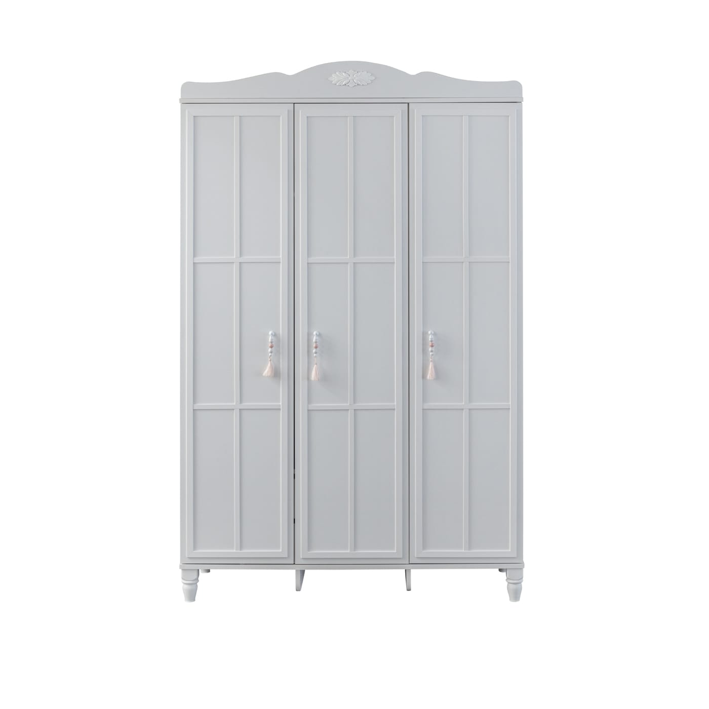 Royal Bebek Odası Takımı, özellikle şıklığı ve zarafeti ile dikkat çeker. Üç kapılı dolap, şifonyer ve 90*190 boyutlarında Montessori yatak içeren bu takım, bebek odasına lüks bir dokunuş ekler. Detaylı açıklamalarla her parçayı tanımlayacak olursak: