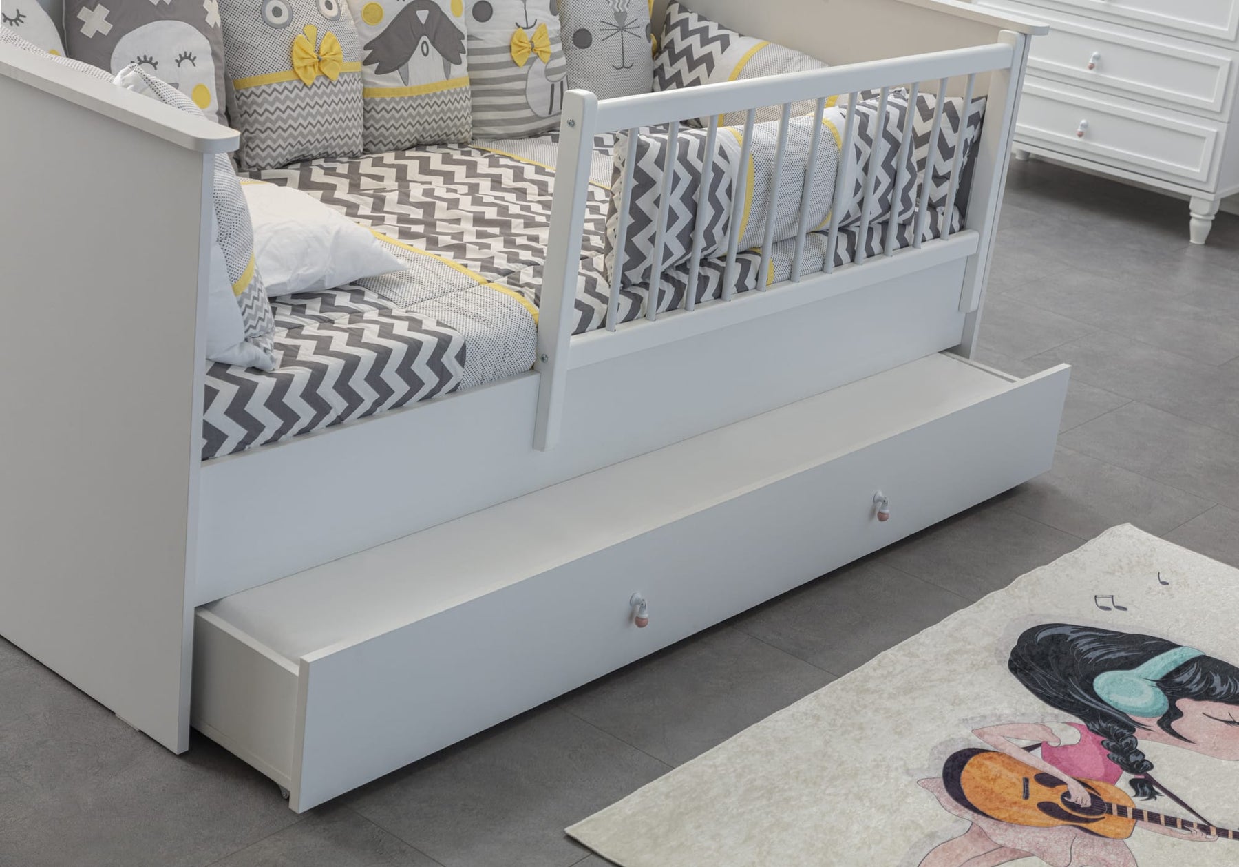 • Fonksiyonellik: Bebeklerin kendi başlarına yatakta hareket etmelerine olanak tanıyan tasarım. Ayrıca, yatak altı depolama alanı da sunabilir.
